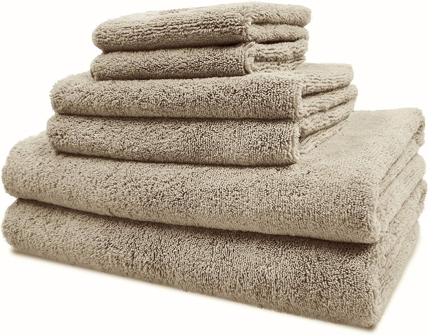 Polyte Plush Quick Dry Lint Free Microfibre Bath Towel Set, 6 Pieces (Beige)